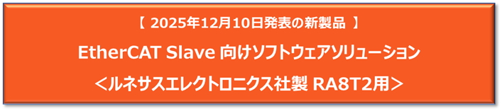 ルネサスエレクトロニクス社製 “RA8T2″向けに開発した EtherCAT ソフトウェアソリューションです。
